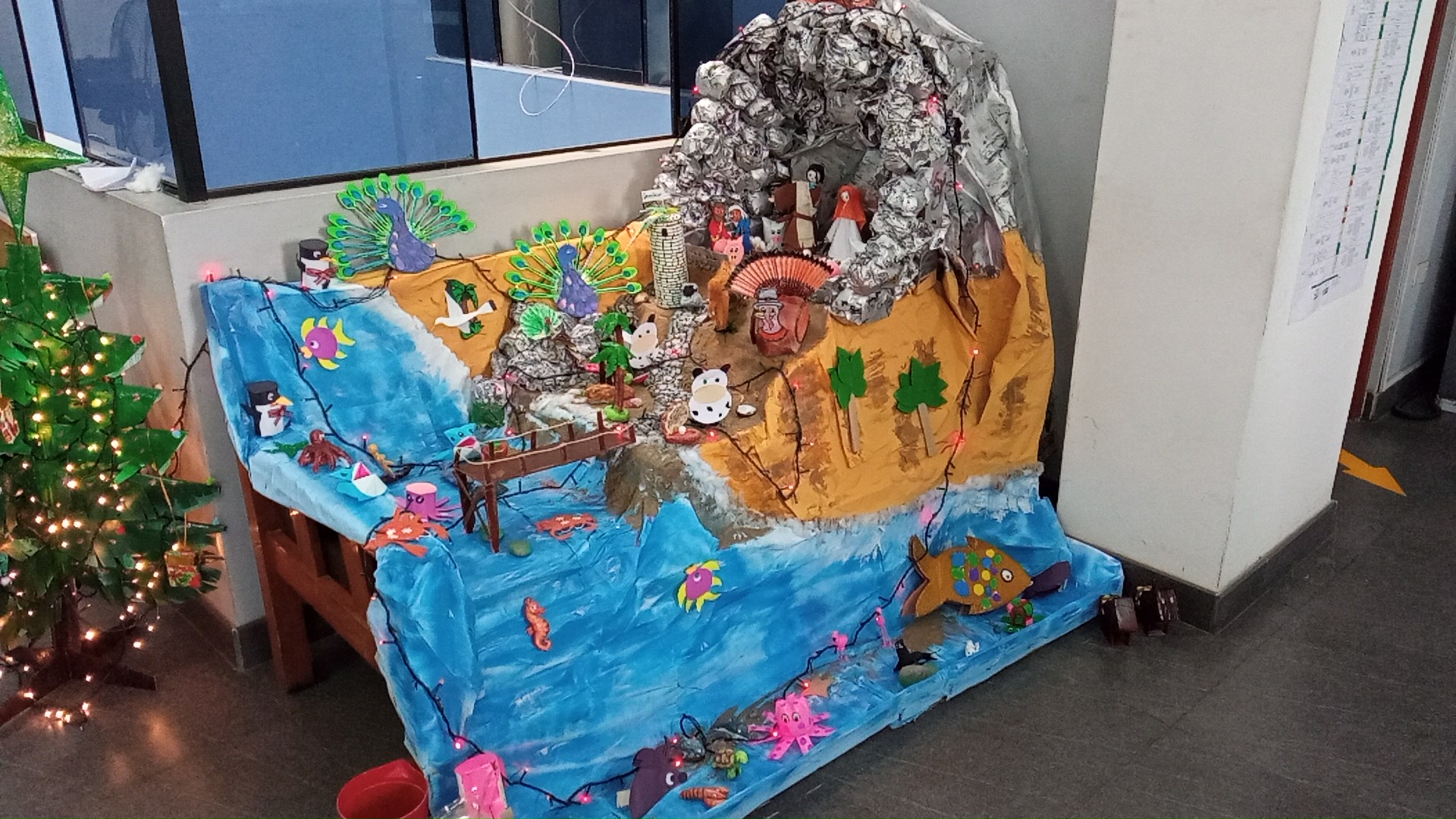Se realizó un concurso de ambientación navideña utilizando reciclaje, juegos virtuales con premios, videos de los familiares y una visita a una casa Hogar para entregar regalos a los niños.